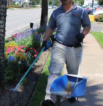 - Picking up trash from grass islands, landscape areas, and hedges